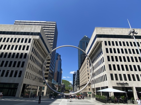 A spectacular large-scale artistic installation that is both refined and technically challenging to manufacture, the Ring is a 30-meter diameter stainless steel aerial work weighing 23,000 kg or 50,000 lbs. It is suspended at the main entrance to Esplanade PVM at Place Ville Marie in downtown Montreal. It is a project tailored to Marmen's exceptional production capacity and manufacturing and technical expertise.